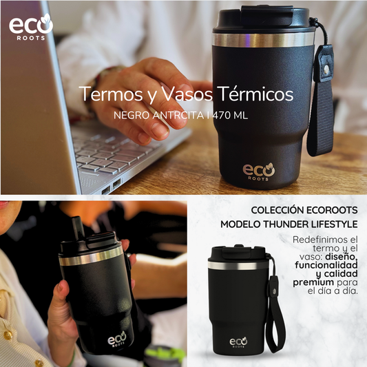 ECOROOTS Thunder I Termo 470 ml I Vaso térmico (Negro Antracita)