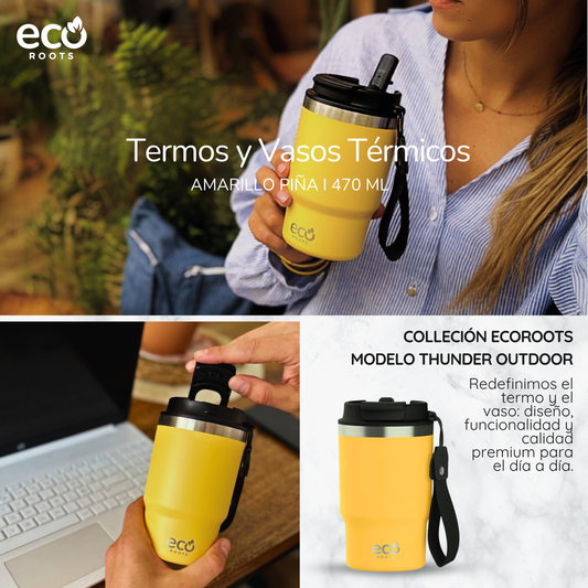 ECOROOTS Thunder I Termo 470 ml I Vaso térmico (Amarilla Piña)