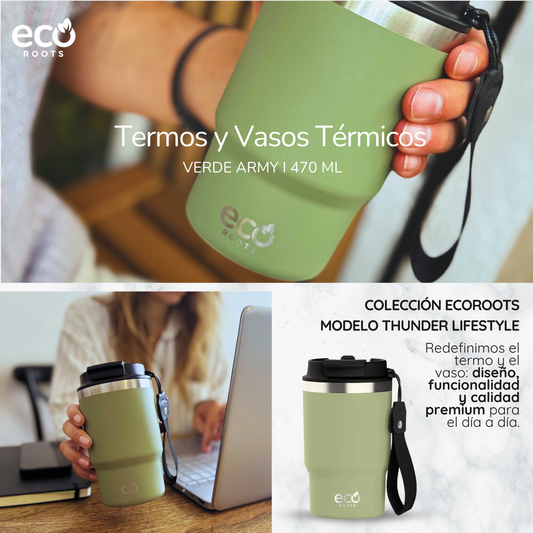 ECOROOTS Thunder I Termo 470 ml I Vaso térmico (Verde Army)