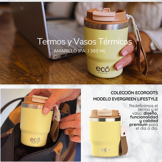 ECOROOTS Evergreen I Termo 360 º I Taza térmica (Amarillo Ipa)