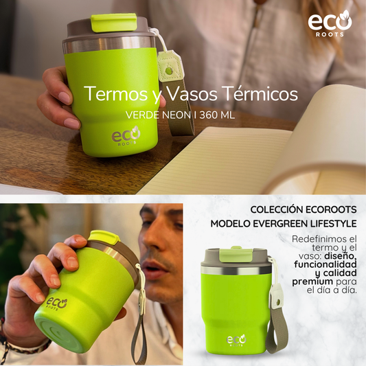 ECOROOTS Evergreen I Taza Térmica 360 º I Vaso térmico (Verde Fresh)