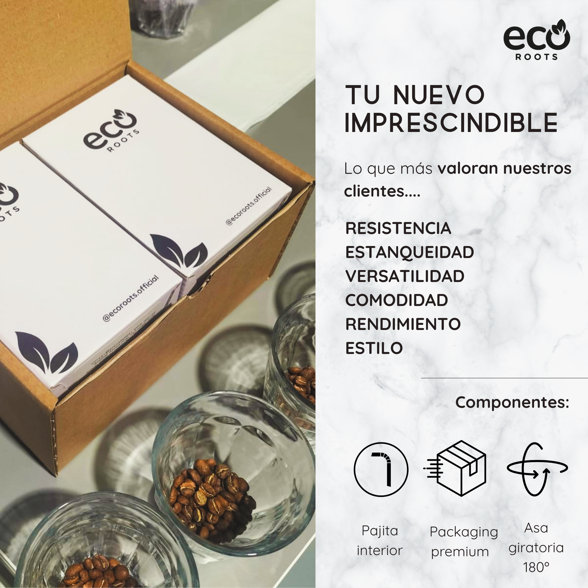 ✦ Asa giratoria 360º: ¡Exclusiva en ECOROOTS! Asa móvil que se adapta a tu ritmo. Llévala en el bolso, mochila o en la bici con total comodidad.