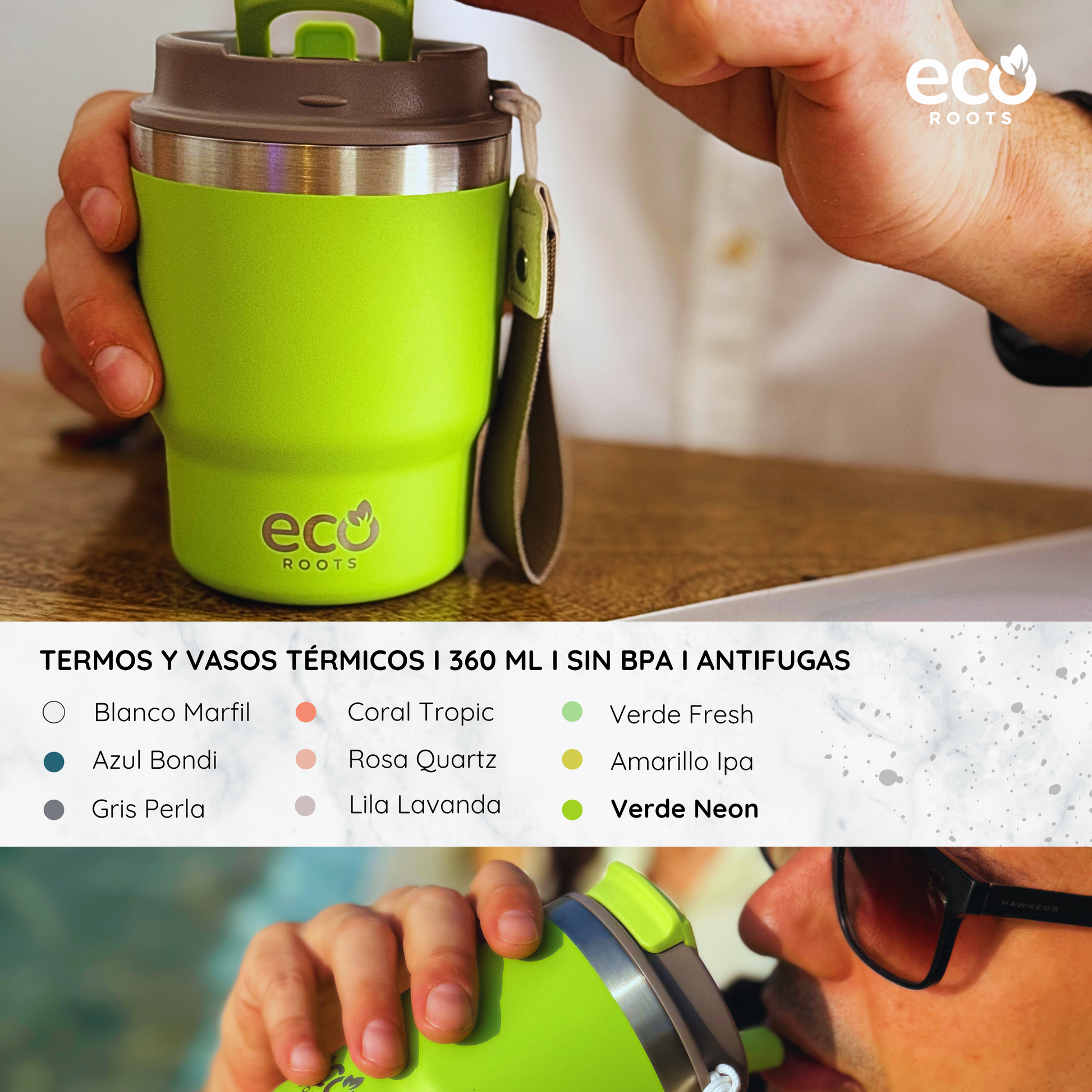 Activa tu energía con estilo: funcionalidad y sostenibilidad el termo ecoroots en Verde Neón